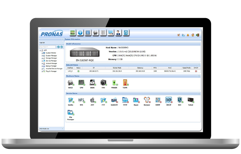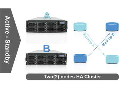 proNAS 3.6 offers up to 2 nodes active/standby high-availability service for storage which ensures no service down time when any NAS server failed. The HA service can automatically initiate a failover operation to transfer the data service to its partner storage systems to ensure data security.