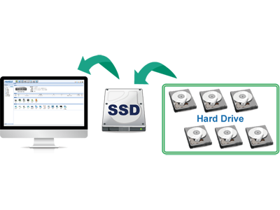 The proNAS 3.6 provides exceptional accelerated performance by using SSD caching, since SSDs offer significant performance benefits over traditional disk drives for applications requiring high random I/O performance, such as OLTP. With the SSD cache technology, frequently accessed data can be selected from the hard disk volumes to enable SSD cache for more efficient disk usage operation and accelerated storage performance.