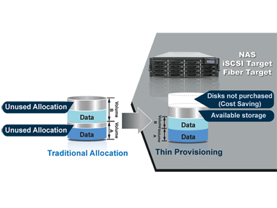 All volumes can be configured with thin provisioning to optimize storage capacity and further reduce cost. With Thin provisioning support, proNAS can increase storage utilization by allowing dedicate more storage than the actual capacity. It also simplifies storage capacity management and eliminates application downtime.