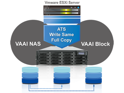 VAAI (vStorage APIs for Array Integration) for both block and NFS storage Aside from VAAI support for block storage iSCSI and Fibre volumes, proNAS 3.6 also supports VAAI for NAS (NFS) to greatly improve VM performance. With VAAI support, VMs have great operation performance by offloading cycles from ESXi to storage and storage can be further effectively utilized by VMs.