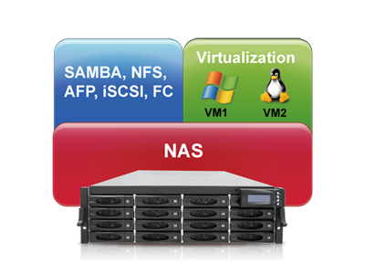 proNAS 3.6 supports virtualization station (VM on NAS) and VMware VAAI to speed up performance under VMware environment. With virtualization station, you can create multiple virtual machines with various operating system such as Windows and Linux on the same NAS system, which saves lots of cost and ease server management aside from setting up several physical servers. Besides, VMware VAAI support can speed up VMware I/O operation when NAS applied to ESXi environment. This can greatly reduce resource overhead on server and further improve performance for storage intensive operations.