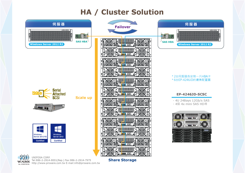 | JBOD控制器 | 單控制器(EP-4246J-SCSC) / 雙控制器(EP-4246JD-SCSC) |